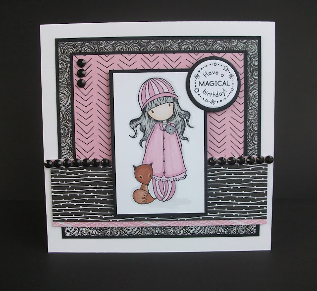 Today's card is for a lovely girl I work with called Angela who loves foxes. It's her birthday on Saturday (same day as mine) so the perfect image to use on a birthday card for her is Gorjuss Foxy by Santoro. I love all of the Gorjuss girls but this is definitely one of my faves...