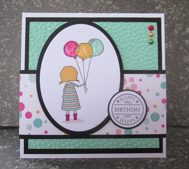There's a lot of white space on this one albeit it's embossed with 'snow'. The digi is an oldie but cute from Digistamp Boutique and I created the greeting in Publisher. The trees are dies I have had for years but I love them because they are such a fab shape.